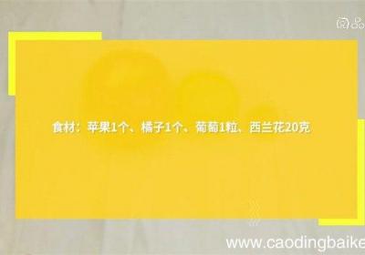 步骤1食材:苹果1个、橘子1个、葡萄1粒、西兰花20克 。【水果拼盘怎么做 苹果和橘子怎么做水果拼盘】步骤2苹果去核,切片 。步骤3橘子去皮,掰成小瓣 。步骤4西兰花放入沸水锅中,煮30秒,捞出备用 。步骤5盘中放入苹果片摆成花朵形状,再在...