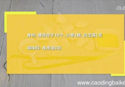 步骤1食材:速冻饺子10个、小葱1根、白芝麻1克 。调味料:食用油3克 。步骤2炒锅中油温5成热时,放入饺子底部煎至金黄 。步骤3倒入清水没过饺子三分之一处,小火焖至水分收干 。步骤4撒入葱花、白芝麻继续焖30秒即可 。【速冻水饺做锅贴饺子...