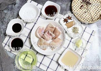 【酱猪蹄的做法 酱猪蹄怎么做】步骤1准备食材:猪蹄300克、姜1块、八角2个、桂皮1块、茴香5克、冰糖10克、生抽1汤匙、酱油1汤匙、蚝油1汤匙、色拉油适量、料酒1汤匙 。步骤2姜切片 。步骤3再将猪蹄洗净备用 。步骤4然后放入冷水锅中,待...