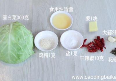 步骤1食材:圆白菜300克、姜1块、大蒜2瓣、干辣椒10克、花椒2克 。调料:盐1克、鸡精1克、食用油适量 。步骤2圆白菜洗净切丝 。步骤3姜切末 。【炝炒白菜丝做法炝炒白菜丝怎么做】步骤3蒜切末 。步骤4干辣椒剪成段 。步骤6锅中放入适量...