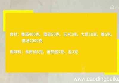 步骤1食材:番茄400克、蘑菇50克、玉米1根、大葱10克、姜5克、高汤2000克、食用油5克、番茄酱5克、盐3克、鸡精1克 。步骤2【外面餐馆汤锅怎么做 汤锅的做法】番茄切块 。步骤3蘑菇切片 。步骤4玉米切段 。步骤5大葱切小段 。步骤...