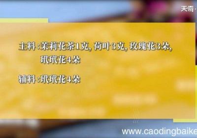 步骤1食材:茉莉花茶1克,荷叶3克,玫瑰花3朵,玳玳花4朵调料:玳玳花4朵【三花纤体茶的泡法 三花纤体茶怎么泡】步骤2取茉莉花、干荷叶、玳玳花、玫瑰花倒入过滤杯,加入开水冲洗灰尘 。步骤3洗好的材料放入茶杯中,倒入开水泡8分钟即可 。...