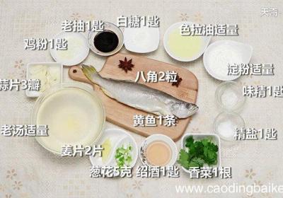 步骤1准备食材:黄鱼1条、香菜1根、葱花5克、姜片2片、蒜片3瓣、八角2粒、淀粉适量、精盐1匙、味精1匙、白糖1匙、鸡粉1匙、老抽1匙、绍酒1匙、老汤适量、色拉油适量 。步骤2将黄鱼洗净后划上花刀 。步骤3香菜切段备用 。步骤4【家焖黄鱼的...