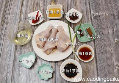 步骤1准备食材:鸡腿200克、油适量、干辣椒10克、料酒1茶匙、花椒5克、八角5克、桂皮5克 生抽1茶匙、老抽1茶匙、糖5克、小葱1根、盐1茶匙 。步骤2鸡腿洗净打上花刀 。步骤3小葱切葱花 。步骤4干辣椒切段 。步骤5首先起锅烧水,水热后...