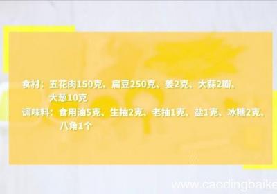 步骤1食材:五花肉150克、扁豆250克、姜2克、大蒜2瓣、大葱10克 。调味料:食用油5克、生抽2克、老抽1克、盐1克、冰糖2克、八角1个 。【猪肉炖扁豆的做法 猪肉炖扁豆】步骤2五花肉切块 。扁豆去筋 。大蒜切片,大葱切片,姜切片 。步...