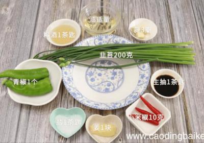 步骤1准备食材:韭苔200克、小米椒10克、青椒1个、蒜3瓣、姜1块、料酒1茶匙、生抽1茶匙、油适量、盐1茶匙 。步骤2韭苔洗净切段 。【香辣韭苔 香辣韭苔怎么做好吃】步骤3小米椒切圈 。步骤4青椒切片 。步骤5蒜切片 。步骤6姜切片 。步...