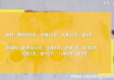 步骤1食材:猪蹄500克、冰糖15克、大葱10克、姜4克 。调味料:食用油10克、生抽4克、老抽1克、料酒3克、花椒2克、香叶2片、八角1克、盐1克 。【怎样做红烧冰糖猪蹄 红烧冰糖猪蹄的做法】步骤2大葱切段 。步骤3姜切片 。步骤4猪蹄冷...