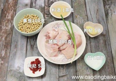 步骤1准备食材:猪脚200克、黄豆100克、盐1茶匙、料酒1茶匙、枸杞5克、小葱1根、姜1块 。步骤2猪脚洗净 。步骤3黄豆浸泡1小时 。【黄豆猪脚汤的做法 黄豆猪脚汤怎么做】步骤4姜切片 。步骤5小葱切葱花 。步骤6首先起锅倒水,水开放入...