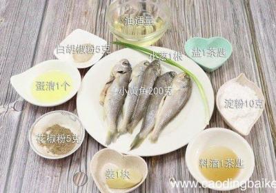 步骤1准备材料:小黄鱼200克、淀粉10克、蛋清1个、油适量、盐1茶匙、白胡椒粉5克、花椒粉5克、料酒1茶匙、小葱1根、姜1块 。步骤2小黄鱼洗净打上花刀 。步骤3姜切片 。步骤4小葱切葱花 。步骤5碗中放入小黄鱼、白胡椒粉、花椒粉、料酒、...