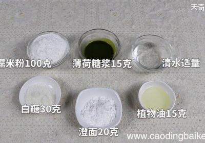 步骤1准备食材:糯米粉100克、澄面20克、清水80克、白糖30克、植物油15克、薄荷糖浆15克 。步骤2取一部分糯米粉倒入碗中,再混入一部分澄面,加入植物油、白糖,加入清水,用刮刀翻拌均匀,揉成面团 。步骤3取13面团,加入薄荷糖浆,再根...
