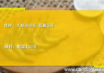 【盐焗大虾怎么做 盐焗大虾的做法】步骤1准备食材:大虾400克、花椒5克、粗盐150克 。步骤2鲜虾倒入清水洗净,剪去虾须虾脚,用厨房纸吸去多余水分 。步骤3准备好砂锅,铺上一层粗盐,放入花椒,再放入大虾,加盖大火焖煮3分钟 。步骤4翻面后...