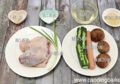步骤1准备食材:鹅100克、火腿肠50克、黄瓜50克、香菇20克、姜1块、盐1茶匙、油适量、料酒1茶匙、小葱1根 。步骤2鹅洗净剁块 。步骤3黄瓜切片 。步骤4火腿肠切片 。步骤5香菇洗净切片 。步骤6小葱切葱花 。步骤7锅中烧热水,水开放...