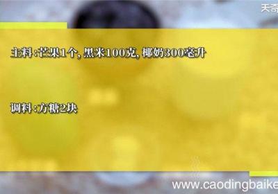 步骤1所需食材:芒果1个,黑米100克,椰奶300毫升 。所需调料:方糖2块 。步骤2黑米捏成团 。步骤3芒果对半切开,刀划十字,切块 。步骤4【芒果黑米捞怎么做 芒果黑米捞的做法】锅中倒入椰浆,加入两块方糖 。步骤5倒入加热好的椰汁到碗中...