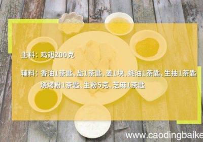 步骤1准备食材:鸡翅200克、香油1茶匙、盐1茶匙、姜1块、蚝油1茶匙、生抽1茶匙、烧烤粉1茶匙、生粉5克、芝麻1茶匙 。步骤2鸡翅洗净打花刀 。步骤3姜切片 。步骤4首先碗中放入鸡翅、姜、蚝油、生抽、香油、盐,拌匀腌制2小时 。步骤5然后...