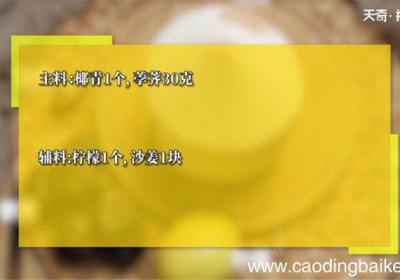 步骤1所需食材:椰青1个,荸荠30克,柠檬1个,沙姜1块 。步骤2荸荠去皮 。步骤3椰青开口,椰汁倒入碗中备用 。步骤4取出椰肉切成小块 。步骤5柠檬切片 。步骤6沙姜拍碎切末 。步骤7椰汁倒入锅中,加入椰肉煮沸,加入沙姜、荸荠、柠檬,小火...