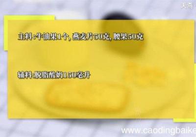 步骤1所需食材:牛油果1个,燕麦片50克,腰果50克、脱脂酸奶150毫升 。步骤2牛油果对半切开,去核,去皮,切丁,备用 。步骤3搅拌杯中倒入牛油果、腰果、燕麦、酸奶,充分搅拌 。步骤4完成后将奶昔倒入杯中即可 。【牛油果代餐奶昔的做法 牛...