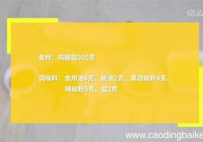 步骤1食材:鸡腿菇500克、食用油4克、蚝油2克、黑胡椒粉4克、辣椒粉5克、盐2克 。步骤2鸡腿菇切厚片,摆入烤盘中,表面刷一层食用油,放入烤箱,180度烤6分钟 。步骤3取出鸡腿菇,刷上蚝油,均匀撒入黑胡椒粉、辣椒粉、盐,再刷一层食用油,...