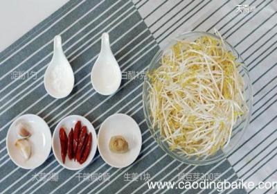 食材:绿豆芽300克、生姜1块、大蒜2瓣、花椒2克、干辣椒6根步骤:【炝炒豆芽的做法】1、绿豆芽洗净后捞出沥干水分,大蒜2瓣切蒜末,生姜1块切姜末,干辣椒6根剪成段;2、调料汁:白糖1克、白醋1克、盐1勺、水淀粉1勺;3、锅内放入适量油,油...