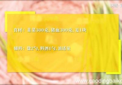 步骤1食材:韭菜300克、猪血300克、姜1块 。辅料:盐2勺、料酒1勺、油适量 。步骤2姜切丝 。步骤3小葱切葱花 。步骤4韭菜切段 。步骤5猪血洗净切成方块 。步骤6热锅注油,下姜丝爆香,放入高汤煮沸,加入猪血,料酒1勺、焖煮10分钟...