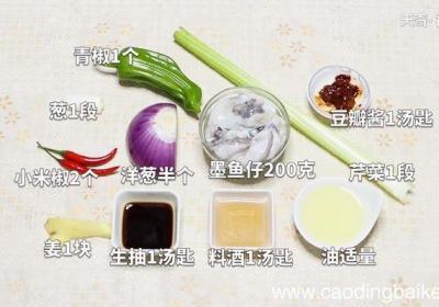步骤1准备食材:墨鱼仔200g,青椒1个,小米椒2个,芹菜1段,葱1段,姜1块,洋葱半个,豆瓣酱1汤匙,食用油适量,生抽1汤匙,料酒1汤匙 。步骤2芹菜切段 。步骤3小米椒切段 。步骤4姜切小片 。步骤5大葱切段 。步骤6青椒切丝 。步骤7...
