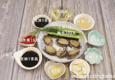 发布时间: 9小时前步骤1准备食材:鲍鱼200克、黄瓜100克、蚝油1茶匙、老抽1茶匙、料酒1茶匙、盐1茶匙、白糖1茶匙、油适量、蒜6瓣、姜1块、小葱1根、小米辣10克 。步骤2鲍鱼去壳洗净 。步骤3切十字花刀 。步骤4姜切末 。步骤5蒜切末 。步骤6小葱切葱...