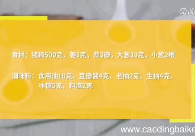 步骤1准备食材:猪蹄500克、姜3克、蒜3瓣、大葱10克、小葱2根、食用油10克、豆瓣酱4克、老抽2克、生抽4克、冰糖5克、料酒2克 。步骤2姜切片 。【煮猪蹄皮不坏方法怎样煮猪蹄皮不坏】步骤3蒜切粒 。步骤4锅中水沸、下2片姜、料酒、小葱...