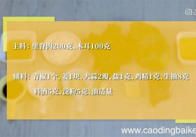 步骤1准备食材:食材:里脊肉200克、木耳100克、青椒1个、姜1块、大蒜2瓣、盐1克、鸡精1克、生抽8克、料酒5克、淀粉5克、油适量 。步骤2里脊肉切丁 。步骤3里脊肉丁里放入生抽5克、料酒5克、淀粉5克拌匀,腌制10分钟 。步骤4青椒去...