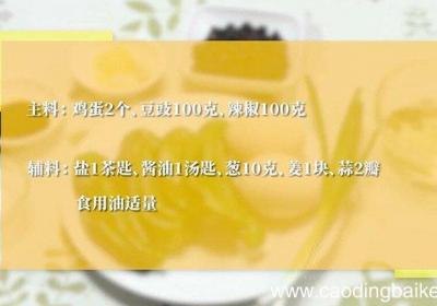 步骤1主料:鸡蛋2个、豆豉100克、辣椒100克 。辅料:葱10克、姜1块、蒜2瓣、盐1茶匙、酱油1汤匙、食用油适量 。步骤2葱切葱花,蒜切末 。步骤3姜切末,辣椒切碎 。步骤4将鸡蛋打入碗中,加少量盐搅散 。步骤5锅中倒油,加入葱、姜、蒜...