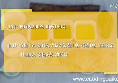 步骤1准备食材:鸡胸肉200克、山药150克、青椒1个、姜1块、大蒜2瓣、盐1克、鸡精1克、生抽8克、料酒5克、淀粉5克、油适量 。步骤2鸡胸肉切片 。步骤3鸡肉中放入生抽5克、料酒5克、淀粉5克拌匀,腌制10分钟 。步骤4山药切片 。步骤...