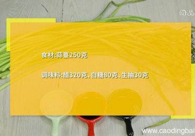 步骤1食材:蒜薹250克、醋320克、白糖80克、生抽30克 。步骤2蒜薹洗净 。步骤3切寸段 。步骤4【糖醋蒜薹怎么做 糖醋蒜薹的做法】容器中加入醋、白糖、生抽,拌匀,放入蒜薹,密封冷藏腌制2周即可食用 。...