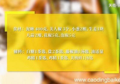 步骤1食材:泥鳅400克,美人椒3个,小葱2根,生姜1块,大蒜2瓣,花椒5克,泡椒5克 。辅料:白糖1茶匙,盐1茶匙,藤椒油1汤匙,油适量,鸡精1汤匙,美极鲜1汤匙 。步骤2泥鳅从背部切开去掉头部 。步骤3美人椒斜切成滚刀块 。步骤4姜切丝...