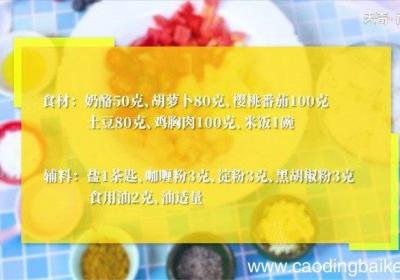 步骤1所需食材:奶酪50克、胡萝卜80克、樱桃番茄100克、土豆80克、鸡胸肉100克、米饭1碗、盐1茶匙、咖喱粉3克、淀粉3克、黑胡椒粉3克、食用油2克、油适量 。【番茄鸡肉芝士焗饭的做法 番茄鸡肉芝士焗饭怎么做】步骤2鸡胸肉倒入碗里,加...