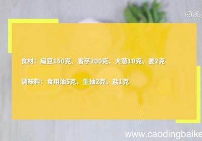 步骤1食材:扁豆150克、香芋200克、大葱10克、姜2克 。调味料:食用油5克、生抽2克、盐1克 。【扁豆煮香芋的做法 扁豆煮香芋怎么做】步骤2芋头切滚刀块 。扁豆去筋 。步骤3大葱切片,姜切丝 。步骤4热锅倒油,油温5成热后,下葱、姜,...