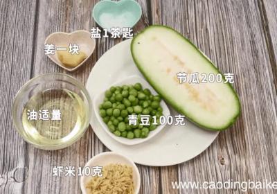 步骤1准备工作:节瓜200克、青豆100克、姜1块、盐1茶匙、虾米10克、油适量、盐1茶匙 。步骤2节瓜切片洗净备用 。步骤3青豆洗净备用 。步骤4姜切片 。步骤5虾米用温水侵泡10分钟备用 。步骤6起锅倒油,油热加入虾米,姜片爆香 。步骤...