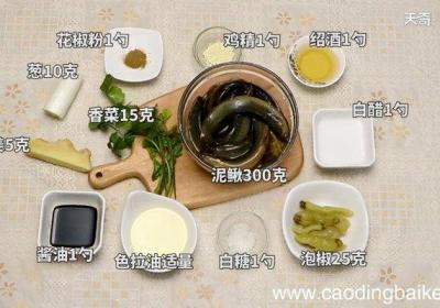 步骤1准备食材:泥鳅300克、香菜15克、泡椒25克、葱10克、姜5克、花椒粉1勺、酱油1勺、白糖1勺、白醋1勺、绍酒1勺、鸡精1勺、色拉油适量 。步骤2将泥鳅宰杀,去头及内脏,洗涤整理干净 。步骤3再用绍酒、酱油、里外涂抹均匀,除去腥味...