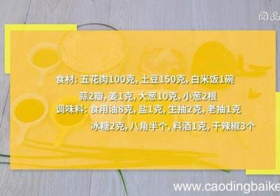 步骤1食材:五花肉100克,土豆150克,白米饭1碗,蒜2瓣,姜1克,大葱10克,小葱2根 。调味料:食用油8克,盐1克,生抽2克,老抽1克,冰糖2克,八角半个,料酒1克,干辣椒3个 。步骤2五花肉切块 。【红烧肉烩饭做法 红烧肉烩饭怎么做...