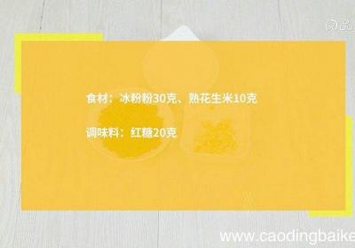 步骤1食材:冰粉粉30克、熟花生米10克、红糖20克 。【冰粉的做法 冰粉怎么做】步骤2锅中放入20克红糖,加入50ml清水,煮至浓稠后,盛出 。步骤3冰粉粉倒入500ml沸水,搅拌均匀,冷却至凝固 。步骤4花生米压碎 。步骤5碗中舀入冰粉...