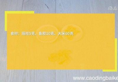 步骤1大米用清水泡发1小时 。【鱼胶瑶柱粥的做法 鱼胶瑶柱粥怎么做】步骤2鱼胶用清水泡发24小时,变软后捞出 。步骤3砂锅中放入大米,倒入700毫升清水,煮沸后,转中小火,熬煮30分钟,放入鱼胶、瑶柱,再熬煮30分钟,即可 。...