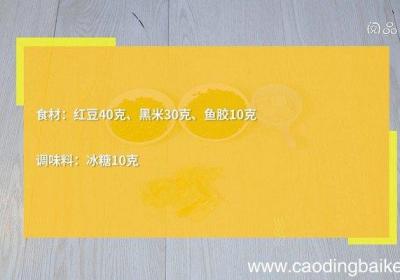 步骤1食材:红豆40克,黑米30克,鱼胶10克、冰糖10克 。步骤2红豆用清水泡发4小时 。步骤3黑米用清水泡发3小时 。步骤4鱼胶用清水泡发24小时,变软后捞出 。【红豆黑米鱼胶的做法 红豆黑米鱼胶怎么做】步骤5砂锅中放入红豆、黑米、鱼胶...