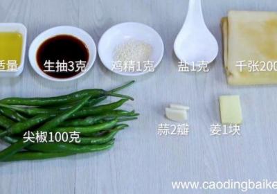 步骤1食材:尖椒100克、千张200克、姜1块、蒜2瓣 。调料:生抽3克、盐1克、鸡精1克、油适量 。步骤2【尖椒炒豆丝的做法尖椒炒豆丝怎么做】尖椒切丝 。步骤3千张切丝 。步骤4姜切末 。步骤5蒜切末 。步骤6锅中放入适量油,油温烧至6成...