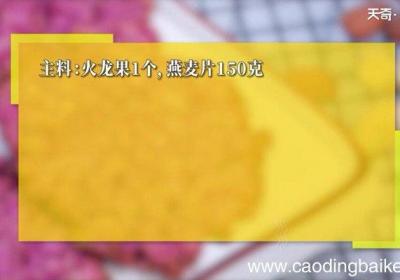 步骤1所需食材:火龙果1个,燕麦片150克 。步骤2火龙果去头、去皮,切丁 。步骤3放入榨汁机,打成泥状,倒入碗中 。步骤4加入燕麦搅拌均匀 。步骤5【无油低脂火龙果燕麦饼干的做法 无油低脂火龙果燕麦饼干怎么做】用勺子压成饼状,压在锡纸盘上...