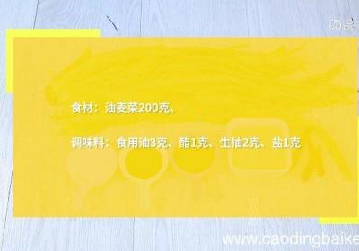 步骤1食材:油麦菜200克调味料:食用油3克、醋1克、生抽2克、盐1克【凉拌油麦菜的做法 凉拌油麦菜怎么做】步骤2油麦菜洗净,水沸后放入锅中焯水30秒,捞出,装盘 。步骤3放入醋、生抽、盐 。步骤4热锅倒油,油烧热后浇在油麦菜上,拌匀即可...