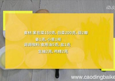 步骤1食材:紫包菜150克,白菜200克,蒜2瓣,姜1克,小葱1根 。调味料:食用油5克,盐1克,生抽2克,鸡精2克 。【紫包菜白菜 紫包菜白菜怎么做】 步骤2紫包菜切丝 。步骤3白菜切丝 。步骤4蒜切片 。步骤5姜切片 。步骤6小葱切葱花...