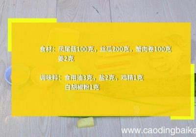 步骤1食材:凤尾菇100克,丝瓜200克,蟹肉卷100克,姜2克 。调味料:食用油3克,盐2克,鸡精1克,白胡椒粉1克 。步骤2凤尾菇撕小朵,姜切末 。步骤3蟹肉卷去掉外衣,丝瓜去皮,切片 。步骤4热锅倒油,油温4成热时,下剩余姜末,炒香,...
