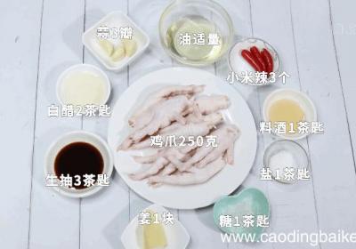 步骤1准备食材:鸡爪250克、生抽3茶匙、白醋2茶匙、蒜3瓣、姜1块、小米辣3个、料酒1茶匙、盐1茶匙、糖1茶匙、油适量 。步骤2姜切末 。步骤3蒜切末 。步骤4鸡爪剪掉指甲剁块备用 。【蒜蓉酸辣鸡爪的做法,蒜蓉酸辣鸡爪怎么做】步骤5凉水下...
