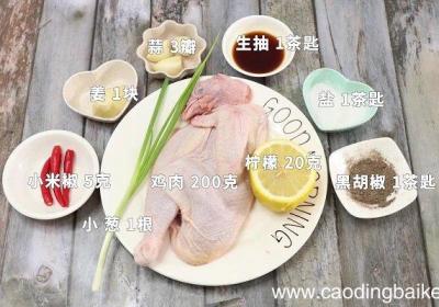 步骤1【柠檬蒸鸡怎么做 柠檬蒸鸡做法】准备材料:鸡肉200克、柠檬20克、姜1块、蒜3瓣、生抽1茶匙、盐1茶匙、黑胡椒1茶匙、小米椒5克、小葱1根 。步骤2鸡腿洗净剁块 。步骤3柠檬切片 。步骤4姜切片 。步骤5蒜切末 。步骤6小米椒切圈...