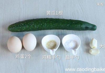 步骤1准备食材:黄瓜1根、鸡蛋2个、大蒜2瓣、鸡精半勺、盐半勺 。步骤2黄瓜去皮洗净,对半切开,切片 。步骤3蒜切末 。步骤4鸡蛋打入碗中,搅拌均匀 。步骤5锅中放入适量油,油温烧至6成热,放入鸡蛋炒熟,捞出备用 。步骤6锅中放入适量油,油...