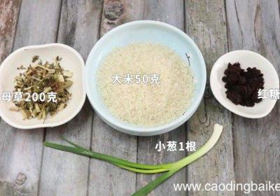 步骤1准备食材:主料:益母草200克、大米50克、红糖1茶匙、小葱1根 。步骤2益母草洗净 。步骤3大米洗净 。步骤4小葱切葱花 。步骤5首先砂锅中倒水,水开放入益母草中火熬汁,约煮半小时后捞出益母草渣,留汁备用 。步骤6然后倒入稻米,用小...