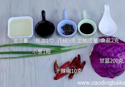 步骤1准备食材:甘蓝200克、蚝油1勺、干辣椒10克、小葱1根、花椒5克、油适量、生抽适量、食盐2克 。步骤2甘蓝洗净,切成小块 。步骤3小葱切成葱花 。步骤4锅内倒油,放入花椒和干辣椒炝锅 。步骤5放入甘蓝,继续翻炒 。步骤6炒至七八成熟...