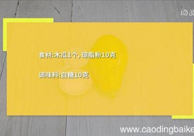 步骤1食材:木瓜1个,琼脂粉10克 。调味料:白糖10克 。步骤2木瓜对半切开,去籽,去皮 。步骤3切块,放入料理机中,打成汁,过滤在碗中 。步骤4锅中倒入100毫升清水,倒入木瓜汁,加热至微沸腾时,放入白糖、琼脂粉,搅拌均匀,关火,盛出...